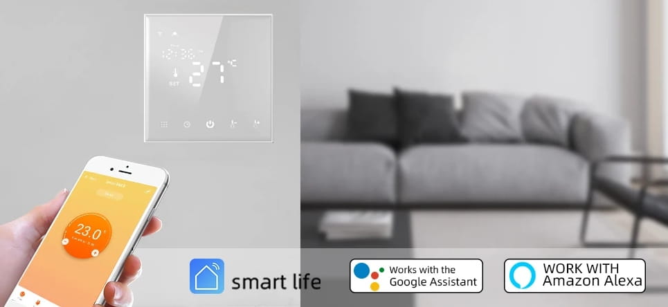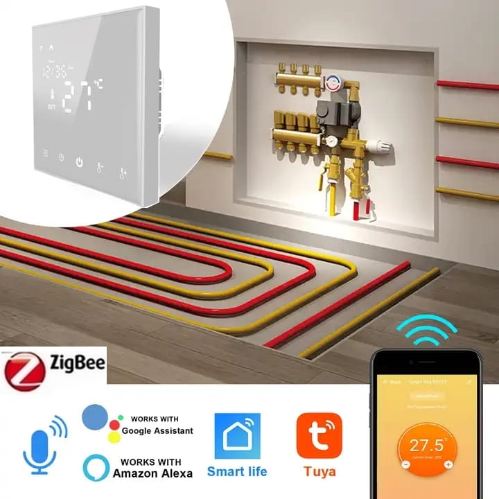 Inteligentny termostat, którym można sterować za pomocą telefonu przed powrotem do domu z całego świata .(Tuya)