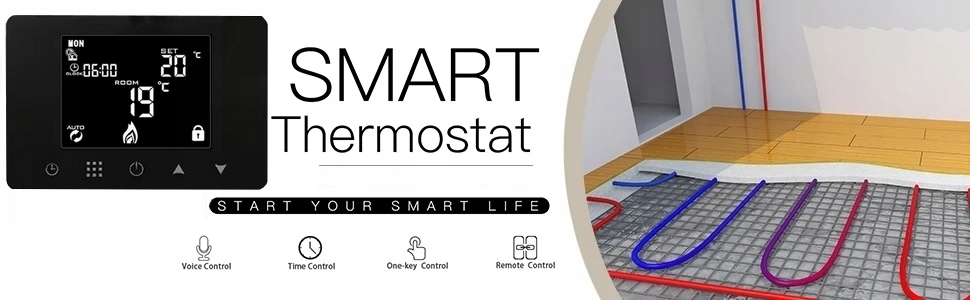 Inteligentny termostat, którym można sterować za pomocą telefonu przed powrotem do domu z całego świata .(Tuya)