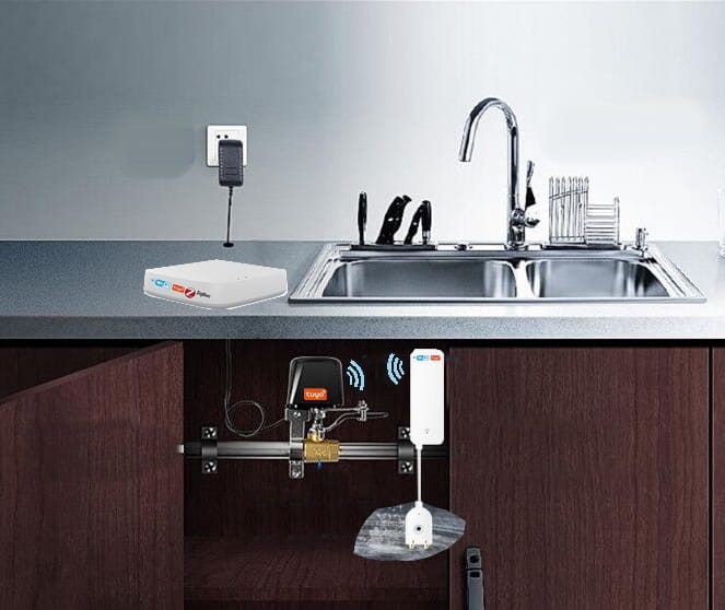 PO WYKRYCIU WYCIEKU WYŚLE POWIADOMIENIE NA TELEFON ORAZ ZAMKNIE BARDZO SZYBKO DOPŁYW WODY .