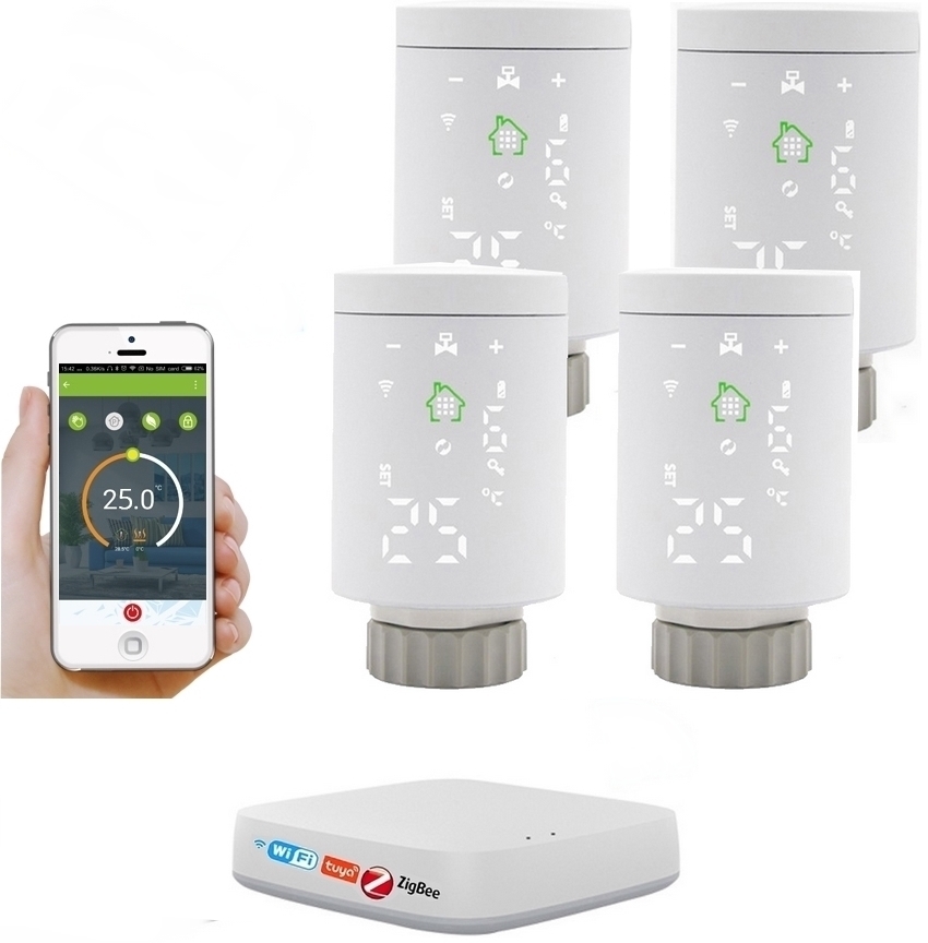 ZESTAW TUYA ZigBee 4 x GŁOWICA TERMOSTAT + CENTRALA WIFI