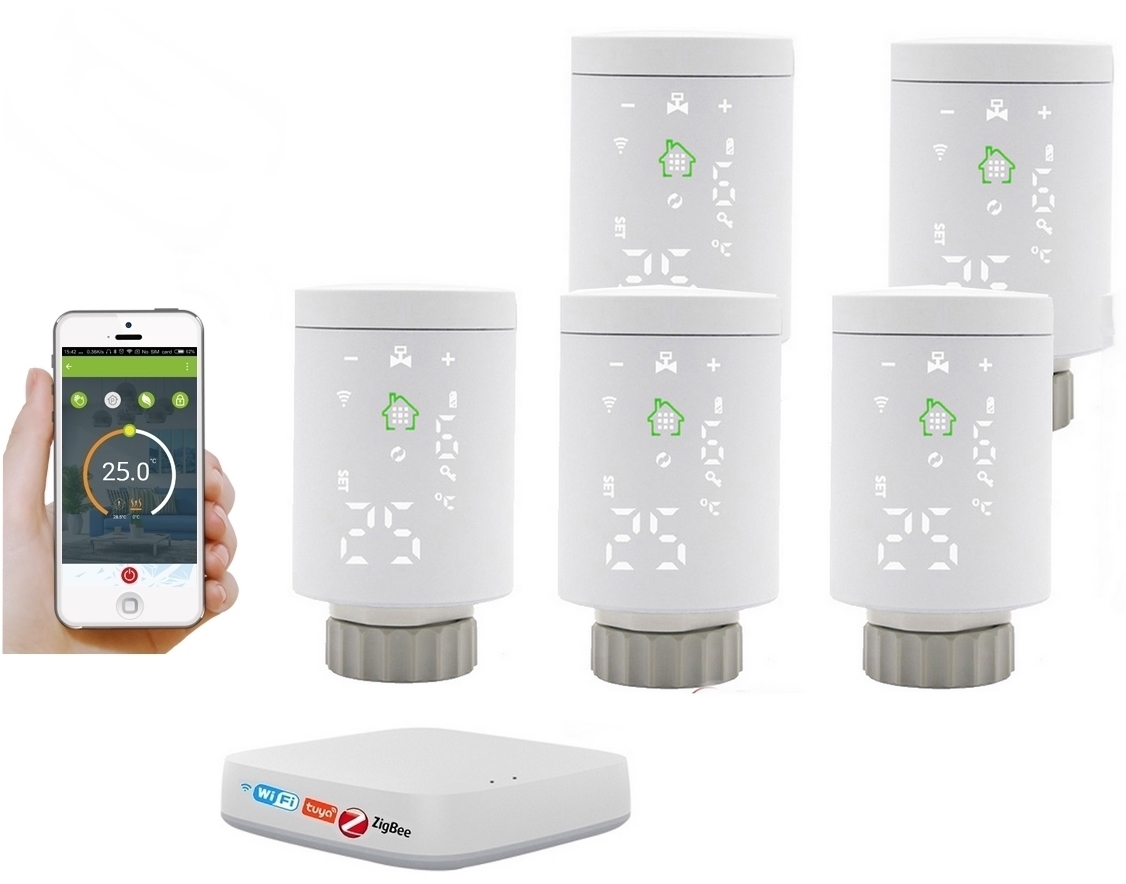 ZESTAW TUYA ZigBee 5 x GŁOWICA TERMOSTAT + CENTRALA WIFI